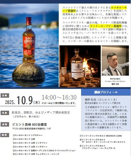 についてウイスキーセミナーを行います。セミナーに加えて貴重なウイスキーの試飲会を実施致します。