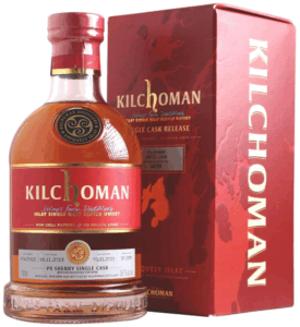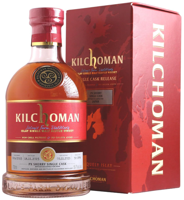 ピートスモークにドライフルーツの味わいが程よく調和したシングルカスク 色はゴールド。グラスに注ぐとどっしりとしたスモークと共に芳ばしい麦芽、サルタナやモカといったシェリーカスク由来のキャラクターが感じられ、煤やプラム、ほんのり潮の香りが加わります。口に含むとソフトレーズンやデーツのふくよかな甘味が広がり、ピートスモークがすぐに追いかけてきます。フィニッシュにかけてペッパーやジンジャーが小気味よく弾け、塩キャラメルの味わいが広がり、再びスモークが現れます。 リフィルPXシェリーカスク由来のくどさのない程よい甘味とキルホーマンのピートスモークが調和したシングルカスクです。
